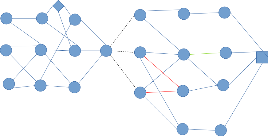 The red lines are where extra choices exist if you have a certain keyword. The green line is where a keyword changes the resulting next mission. The dashed lines are where the specific victory condition of the mission determines what the next step is. (Someday, I will come back and make this accessible.)